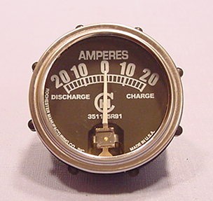 351145R91. For use with Cub or Cub Lo-Boy with 6 volt or 12 volt electrical systems. This gauge is primarily seen on early Cubs and is the part number referenced in Parts Manuals TC-37 (6-3-1947) and TC-37A (5-2-1949). |