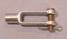 Item description: replacement brake rod clevis assembly, new, steel, made in the U.S.A., includes clevis pin with cotter pin.