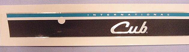 | Decal shown on hood and fuel tank LH side. This decal was used on International Cub with squared style front hood with flat grille serial# 248125 and above. |