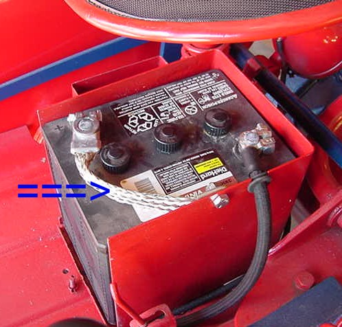 negative ground electrical systems, replaces 69510DA This strap is used from the battery terminal to a hole in the top left side of an original style battery box. Shown below with 6 volt positive ground electrical system.