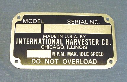 replacement serial number tag early year, new, made in the U.S.A. This tag was used until 1950. Will fit other Farmalls of the same years. Comes with steel and brass rivets.