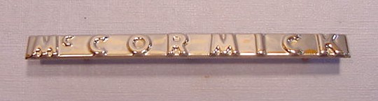 replacement Mc Cormick name plate, new, replaces 362389R1, name plate attaches to the indented area of
