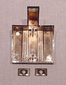 import, chromed metal, includes two (2) steel clips.
