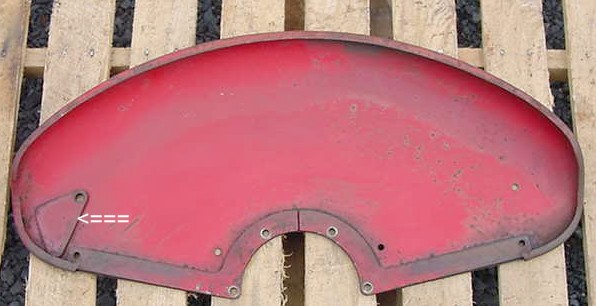 "LH rear fender" this fender will also fit RH side, it has the added reinforcement plate for later year Cubs with the fast hitch helper spring connections. |