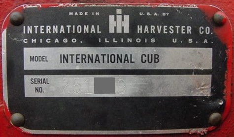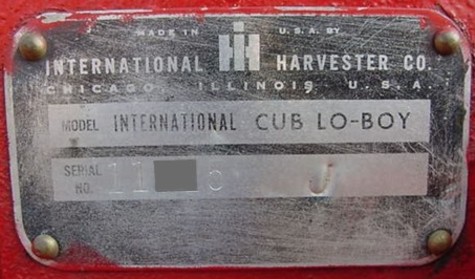 A portion of each serial number has been blurred to protect the privacy of its owner. Many thanks to the Cub owners who allowed me to photograph their tractors, and to Jim Becker who added pictures and advice regarding the content of this page.