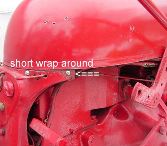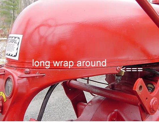 "Hood and fuel tank support comparison between the long wrap around style and the short wrap around style"